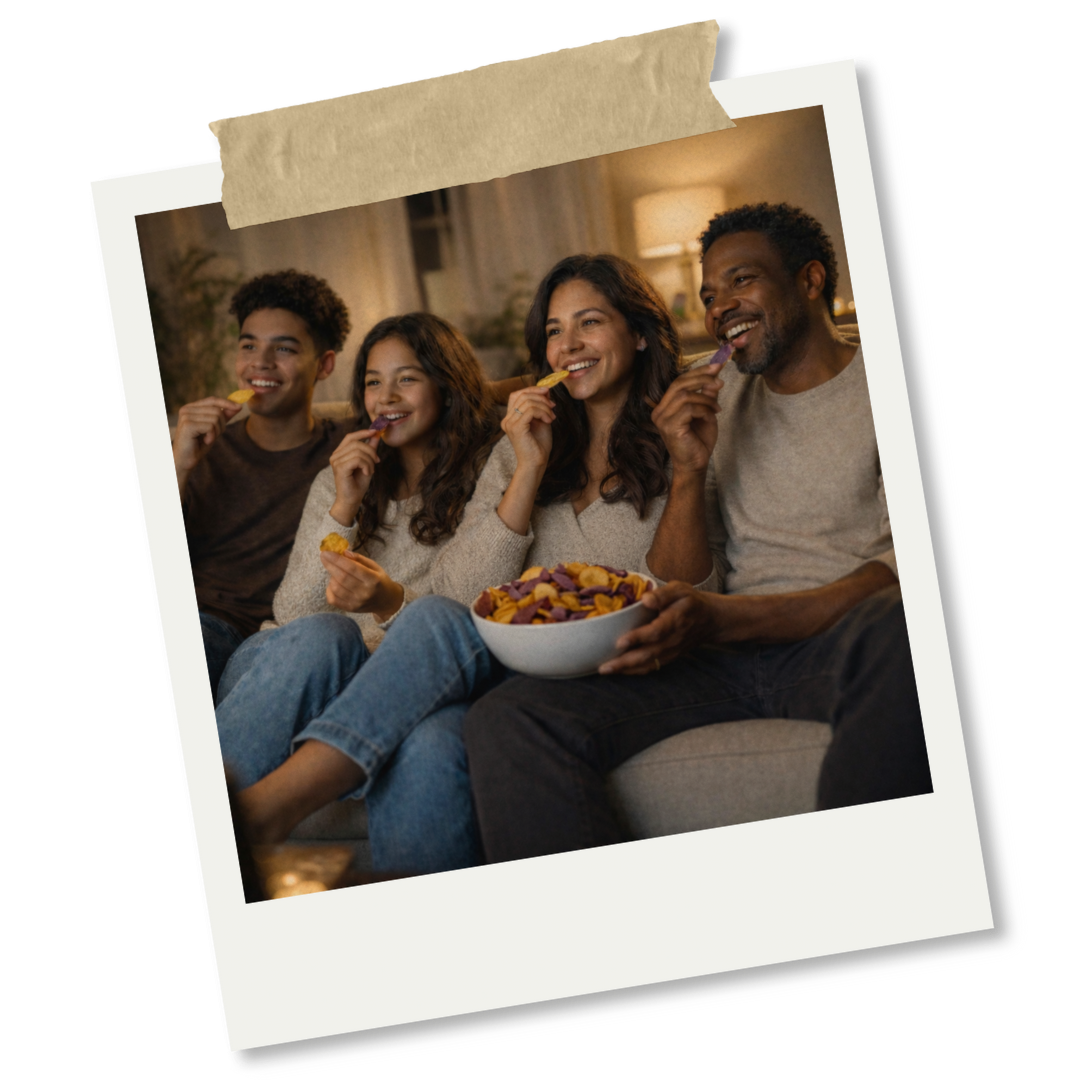 Our chips begin with organic heirloom potatoes and non-GMO ingredients, grown with intention and respect for the land. We believe food should nourish the body without harming the planet, and every choice we make starts at the source.